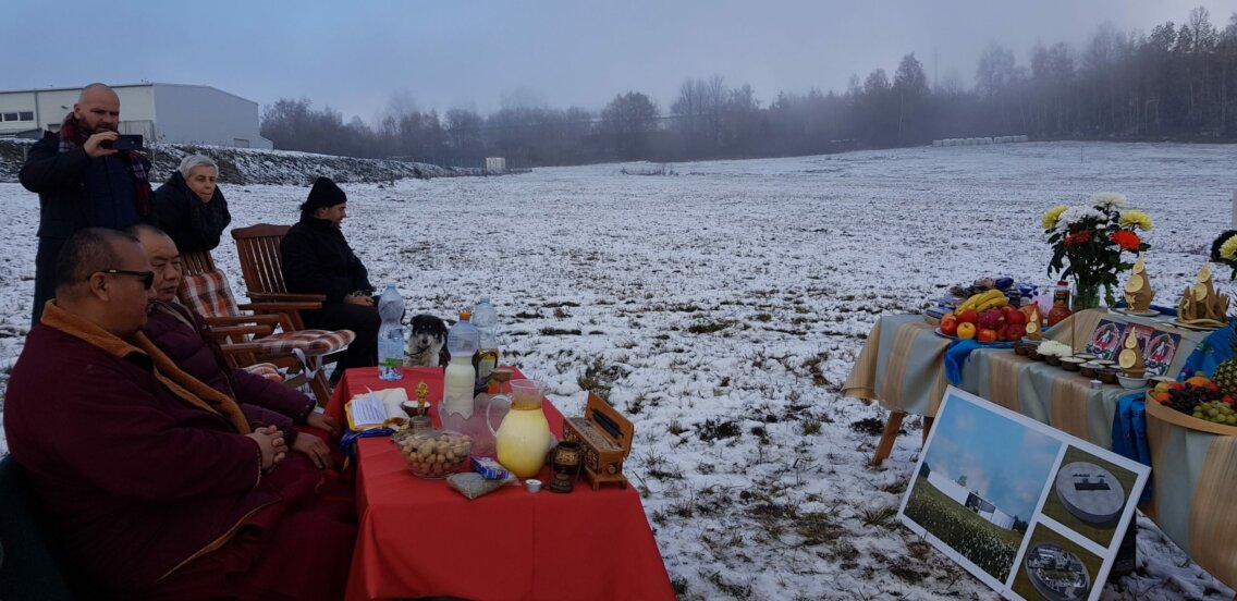 14. listopadu 2019 laskavě provedli dva tibetští mniši na místě naší budoucí haly rituál za hadký průběh její stavby. Vznesli naším jménem prosby, aby budova vznikala v souladu a míru se svým okolím, s půdou, na které bude stát a jejími obyvateli.